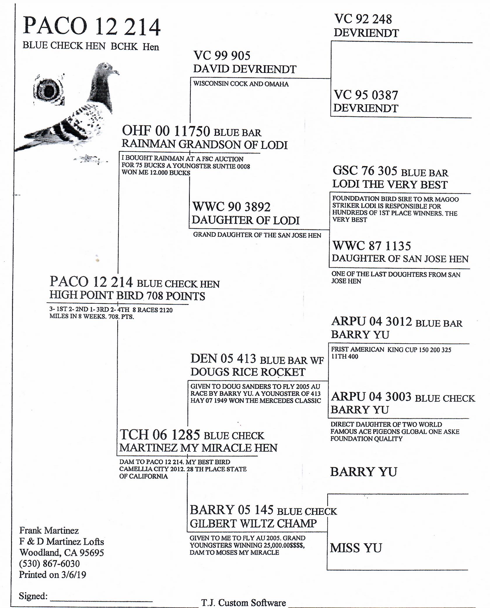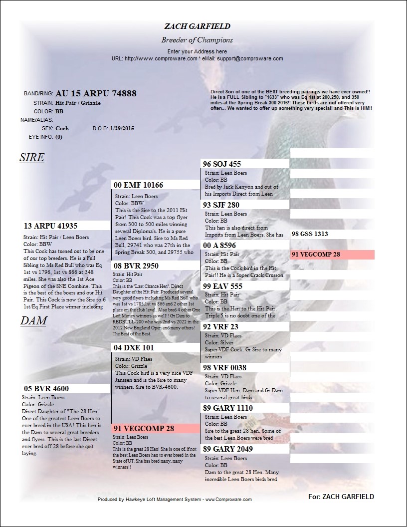 $350 SOLD RARE COLOR RACING PIGEON HEN
