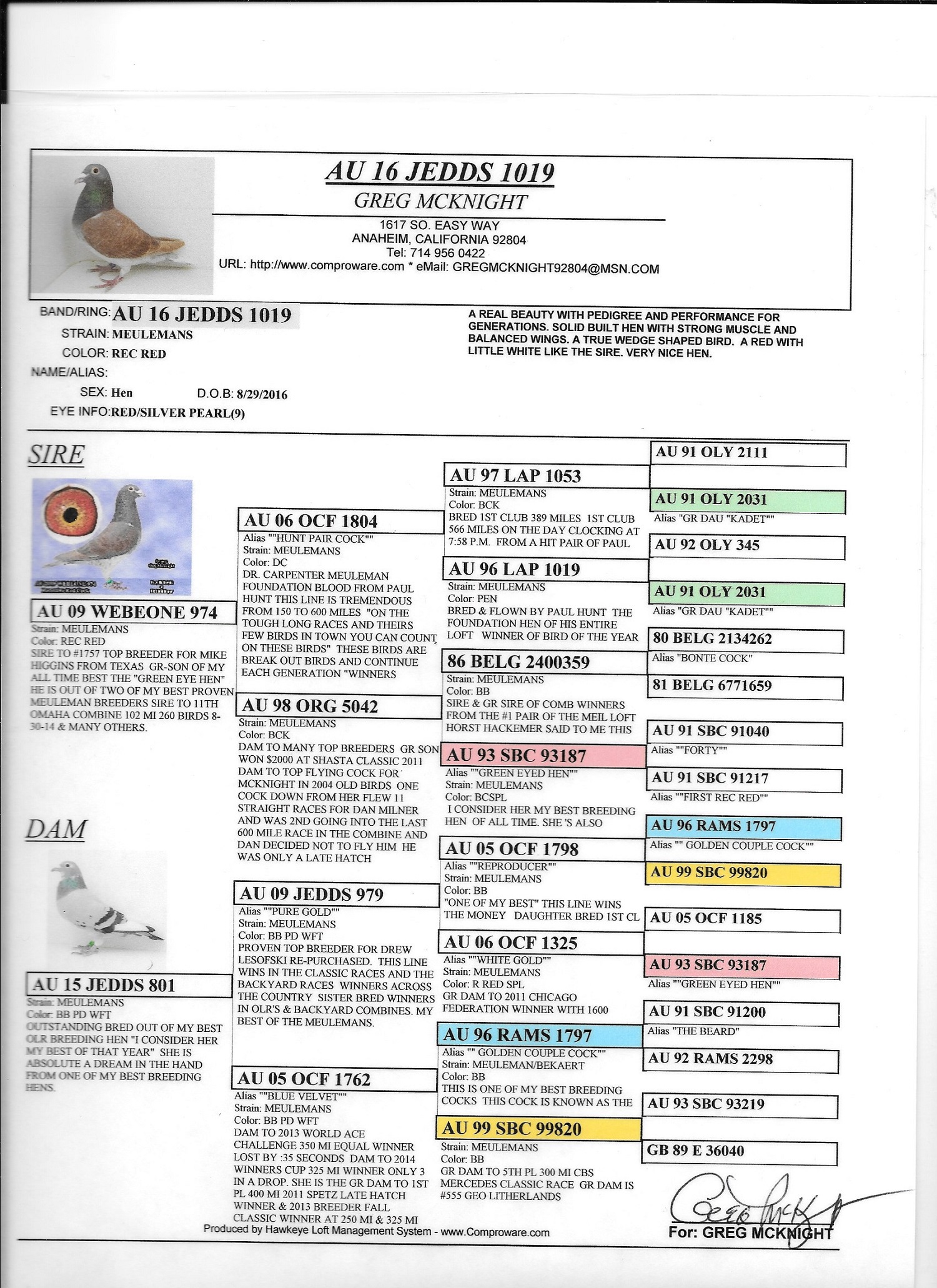 His children have produced top one-loft performers for us as well as for multiple clients including: 1ST, 1ST, 1ST, 1ST, 1ST, 1ST, 1ST, 2ND, 2ND, 2ND, 3RD, 3RD, 3RD, 3RD, 4TH, 4TH , 5TH, 7TH, 7TH… etc.